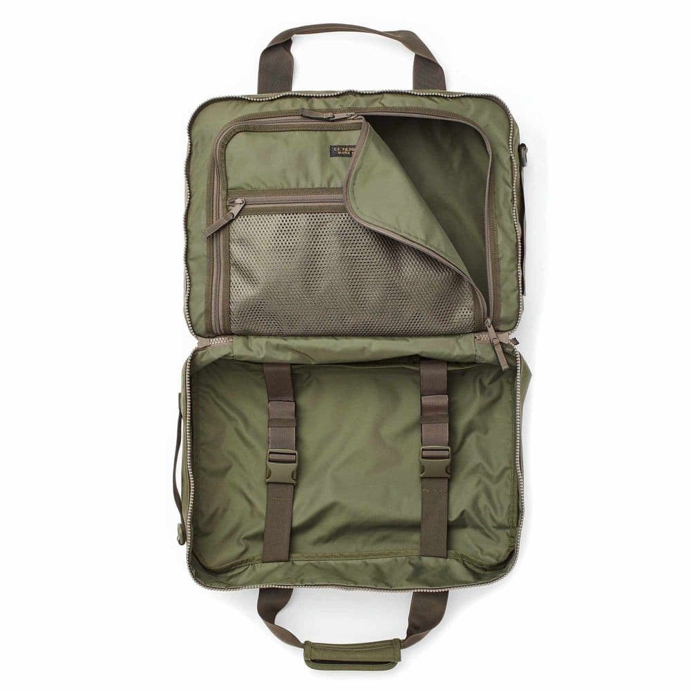 Built from a super heavy duty 500D Cordura® ripstop that resists abrasion, punctures, and tearing. The clamshell-style opening provides complete visibility of your contents. Exterior front zipper and rear snap-secure pockets for quick access to essentials such as your mobile, tablet, or small laptop. Key fob strap in the rear exterior pocket for convenient access to your keys without losing them in the bag. Three-way carry design lets you carry by hand, over the shoulder, or on your back remove padded over-the-shoulder strap and padded backpack shoulder straps when not in use. Perfectly sized to meet overhead storage restrictions of most major airlines. Interior adjustable nylon-webbing straps secure folded clothes, keeping them neat and organized. Interior panel-opening zipper makes the perfect large pocket for storing dirty clothes or other gear and features a zippered mesh pocket for additional organization. Imported Dimensions: 18"L x 13 1/2"W x 9"D